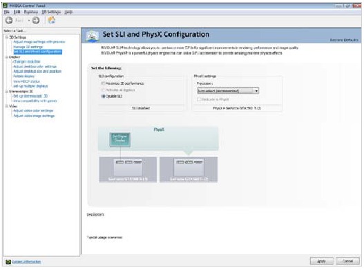 - NVIDIA Control Panelni ochganingizdan so'ng, chap vazifalar panelida Set SLI and PhysX configuration (SLI va PhysX konfiguratsiyasini sozlash) ni bosing.