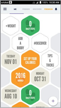 > Settings (Sozlamalar) ni bosing va bo'yingiz, vazningiz va boshqa tafsilotlarni kiriting. - Kaloriya maqsadlaringizni sozlash, do'st qo'shish, motivatsion maslahatlar va fokuslarni o'qish va boshqalar uchun ilovaning asosiy ekranidagi bloklarni bosing.