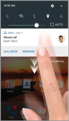 - Bildirishnomalar panelini ko'rish uchun istalgan ekran yuqorisidan barmog'ingizni pastga torting. Qo'shimcha imkoniyatlarni ochish uchun yana bir marta pastga torting.