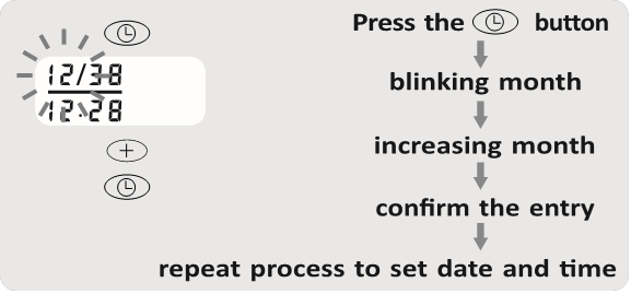 yana bosing va ekranda oyning kunini ifodalovchi miltillovchi raqam paydo bo'ladi. - Yuqoridagi 2-bosqichda tasvirlanganidek,