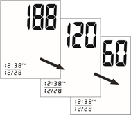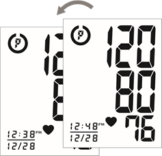- O'lchash tugallangach, manjet butunlay shishadi. Sistolik bosim, diastolik bosim va puls LCD ekranda bir vaqtning o'zida ko'rsatiladi. Keyin o'lchov avtomatik ravishda xotirada saqlanadi.