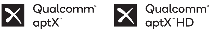 Qualcomm - Amerika Qo'shma Shtatlari va boshqa mamlakatlarda ro'yxatdan o'tgan Qualcomm Incorporated kompaniyasining savdo belgisi. aptX - Amerika Qo'shma Shtatlari va boshqa mamlakatlarda ro'yxatdan o'tgan Qualcomm Technologies International, Ltd. kompaniyasining savdo belgisi.