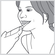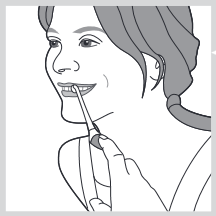 - Nozul uchini milk chizigʻida ikki tish orasiga joylashtiring. Sıçramanın oldini olish uchun nozul joyida boʻlganda lablaringizni biroz yoping. (13-rasm)
