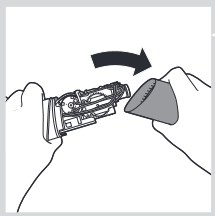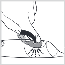 Eslatma: Ilyustratsiyada koʻrsatilgandek, uchini tutqichning old tomoniga qaratib qoʻyishingizni maslahat beramiz, lekin nozul funksiyaga taʼsir qilmasdan tutqichga istalgan tomonga joylashtirilishi mumkin. Ikkala variantni ham sinab koʻrishingiz va ogʻiz boʻshligʻini parvarish qilish tartibida siz uchun eng yaxshi boʻlganidan foydalanishingiz mumkin.